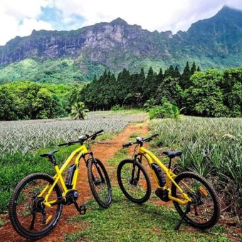 Explore the island of Moorea with an electric bike. Go around the island (60 kms) and visit at your own pace the pineapple plantations, Polynesian temples (sacred places - Marae), lookouts, white sand beaches, ancient trees and lush flora, the heart of the old crater of the volcano, the outline of the two bays of Cook and Opunohu, taste the local jams while passing by the agricultural school, ... all this while admiring the turquoise lagoon. Electric bikes are possible for leisure or in sport mode