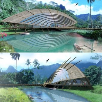 Plan to visit the Fare Natura at Opunohu, a new ecosystem museum in French Polynesia. Description of an island ecosystem in the South Pacific. You will discover: legends, coral life, the underwater and terrestrial environment, aquariums of the marine ecosystem, E-max cinema of underwater life, the garden with native or endemic plants, a path walk on the relief for discovery and view of Opunohu bay, refreshment bar.