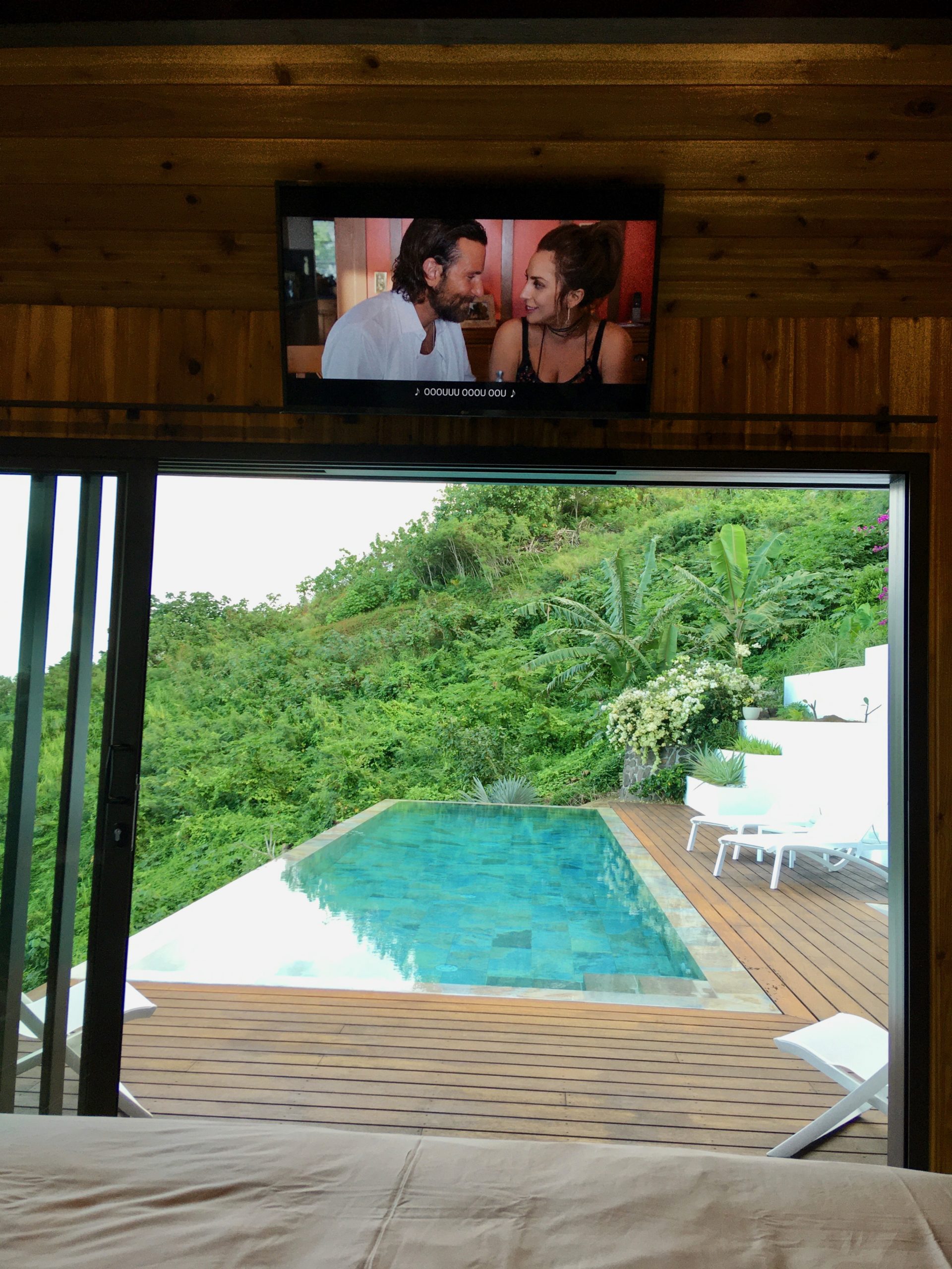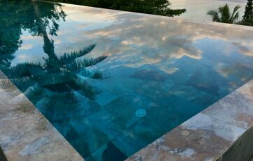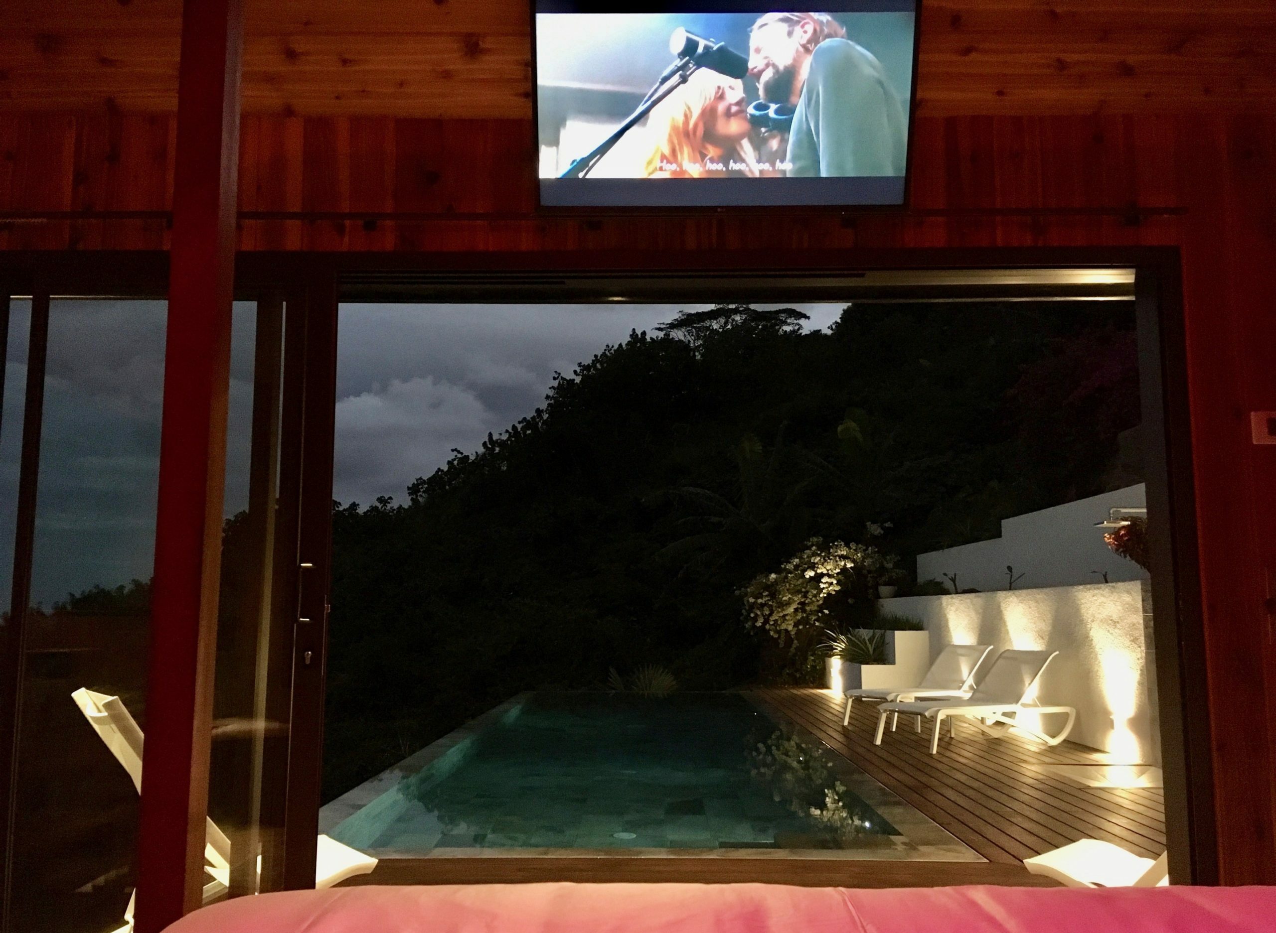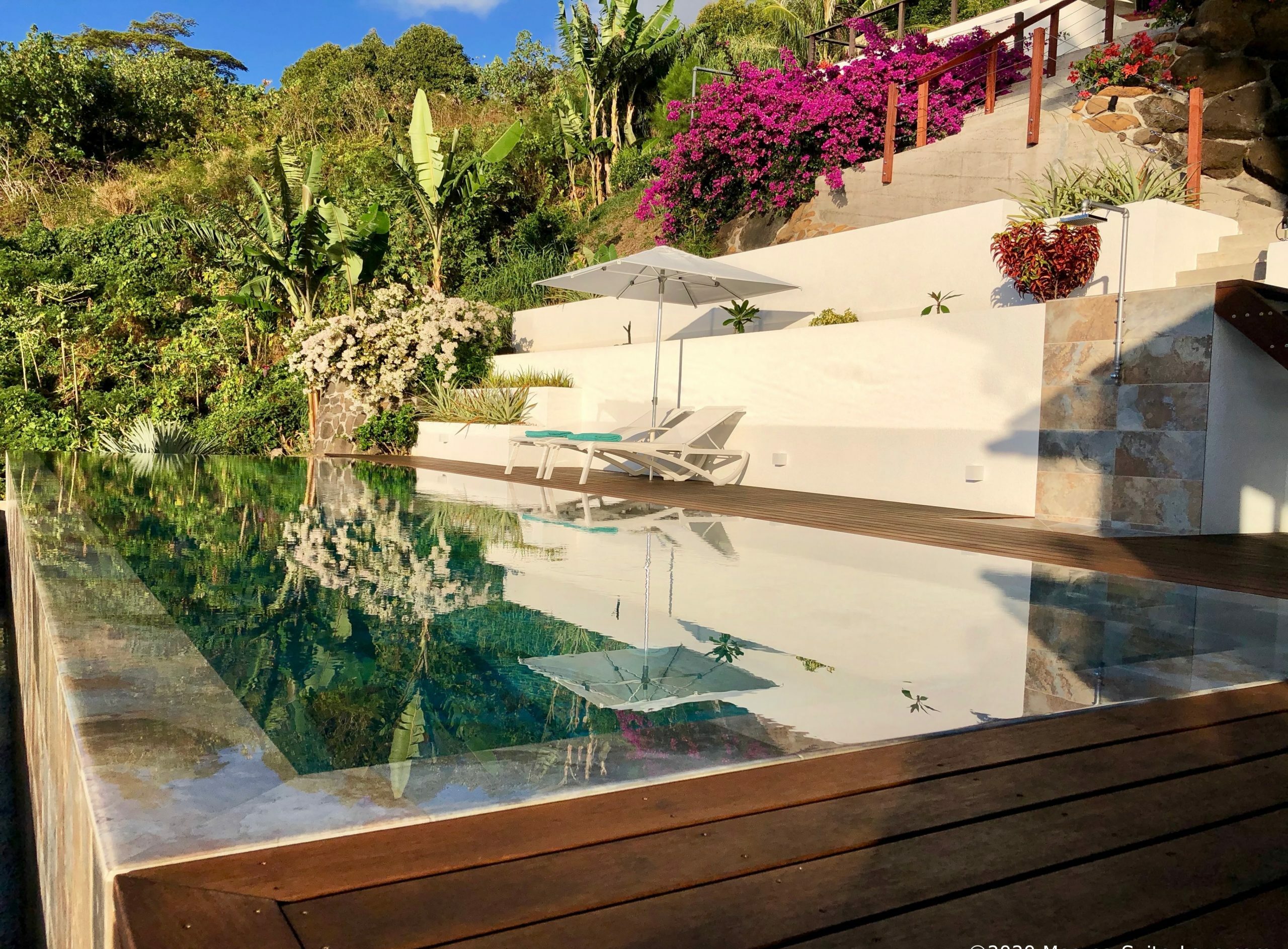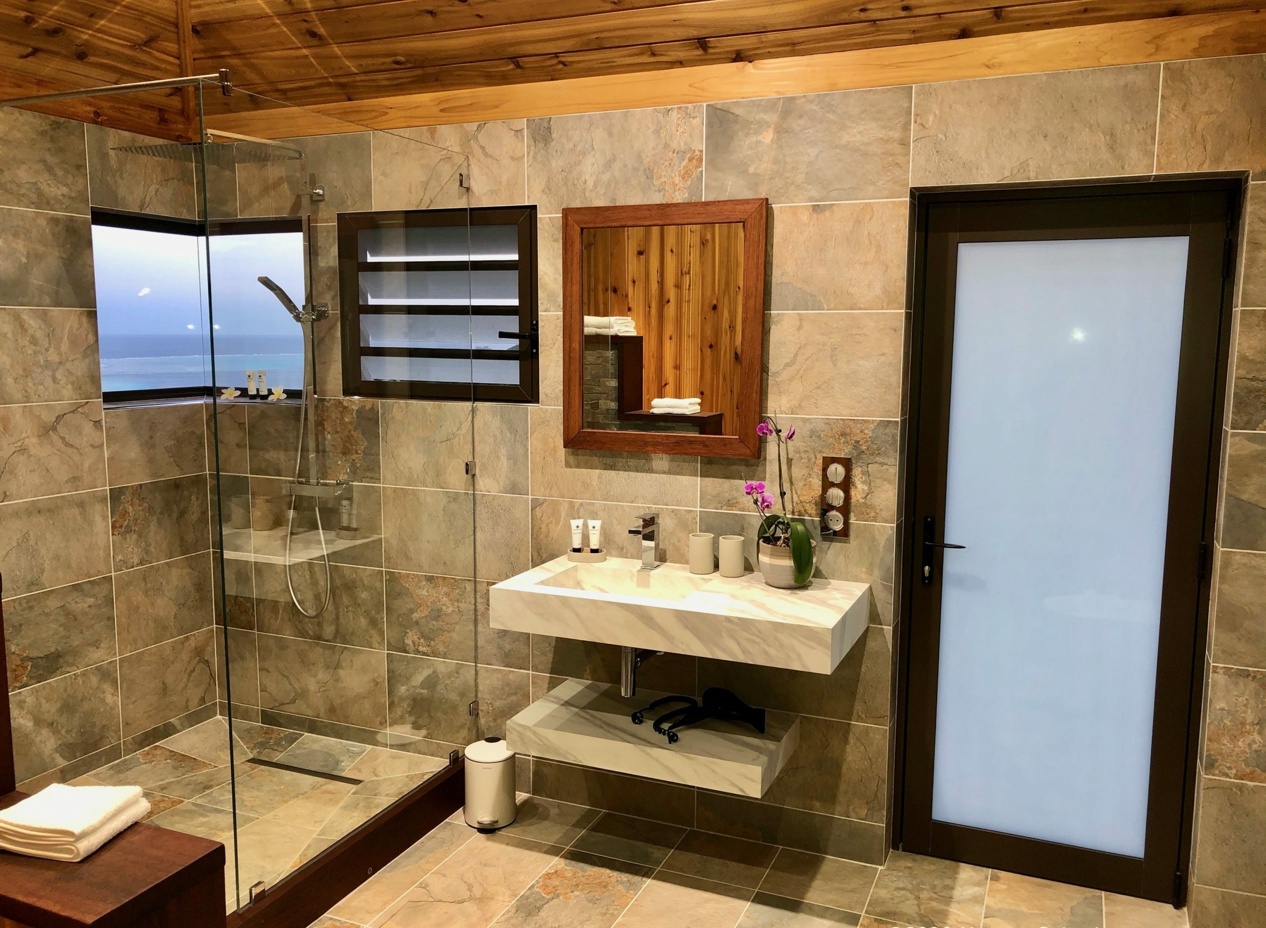 Moorea Suite Love is a spacious and luxurious mirror pool, newly built at the top of an exclusive private residence offering a breathtaking panoramic view. Perfectly integrated into its lush tropical surroundings, this elegant Suite is composed of two harmonious spaces: a romantic bedroom by the pool, and a refined bathroom overlooking the water, connected by an internal staircase. Every detail has been designed to offer comfort, privacy, and unforgettable romantic moments — both day and night, in complete serenity.